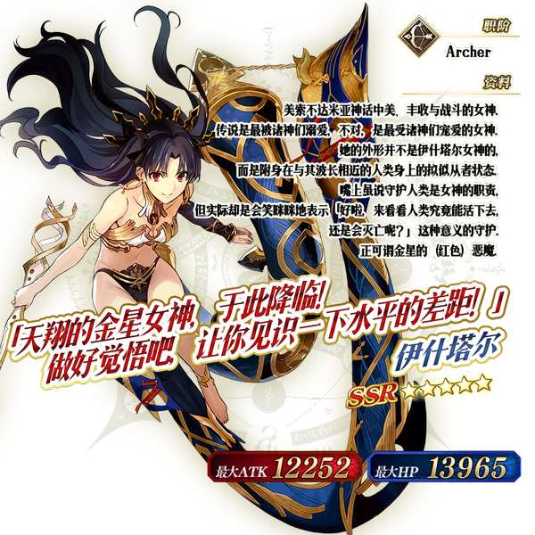 ※以上的「★5(SSR)伊什塔尔(Archer)」的立绘为灵基再临第2阶段。