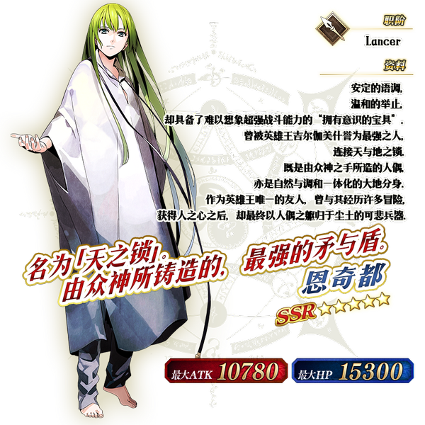 ※以上的「★5(SSR)恩奇都」的立绘为灵基再临第2阶段。